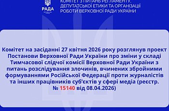 Проект Постанови про зміни у складі Тимчасової слідчої комісії Верховної Ради України з питань розслідування злочинів, вчинених збройними формуваннями Російської Федерації проти журналістів та інших працівників суб’єктів у сфері медіа
