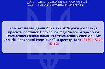 Комітет на засіданні 23 березня 2026 року розглянув проекти постанов Верховної Ради України про звіти тимчасових слідчих комісій Верховної Ради України, які були утворені 12 та 27 березня 2025 року