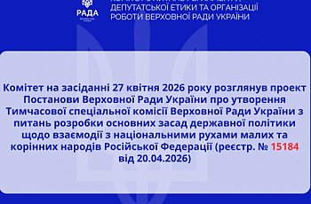 Комітет ухвалив експертний висновок на проект Постанови Верховної Ради України (реєстр. № 13264-П від 11.03.2026)